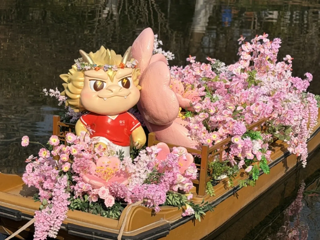 在江南水鄉(xiāng),早春的序曲總是由梅花奏響。江蘇常州便是這抹春色里最具代表性的剪影。龍城正月,古運(yùn)河畔紅燈籠高掛,紅梅公園內(nèi),唐代紅梅閣翹角飛檐,閣前紅梅燦若云霞,恰如趙翼詩中所繪的盛景。這里的賞梅,早已不是單純的游園,而是一場雅俗共賞的年俗盛會。文旅IP“常寶"穿梭送福,打卡點(diǎn)紅燈籠高懸,大年初一的市集上,手作、梅花好物琳瑯滿目,糖畫、梅花酥香氣四溢,文筆塔的花瀑氛圍拉滿,市民在梅香與煙火氣中收獲新春幸福。