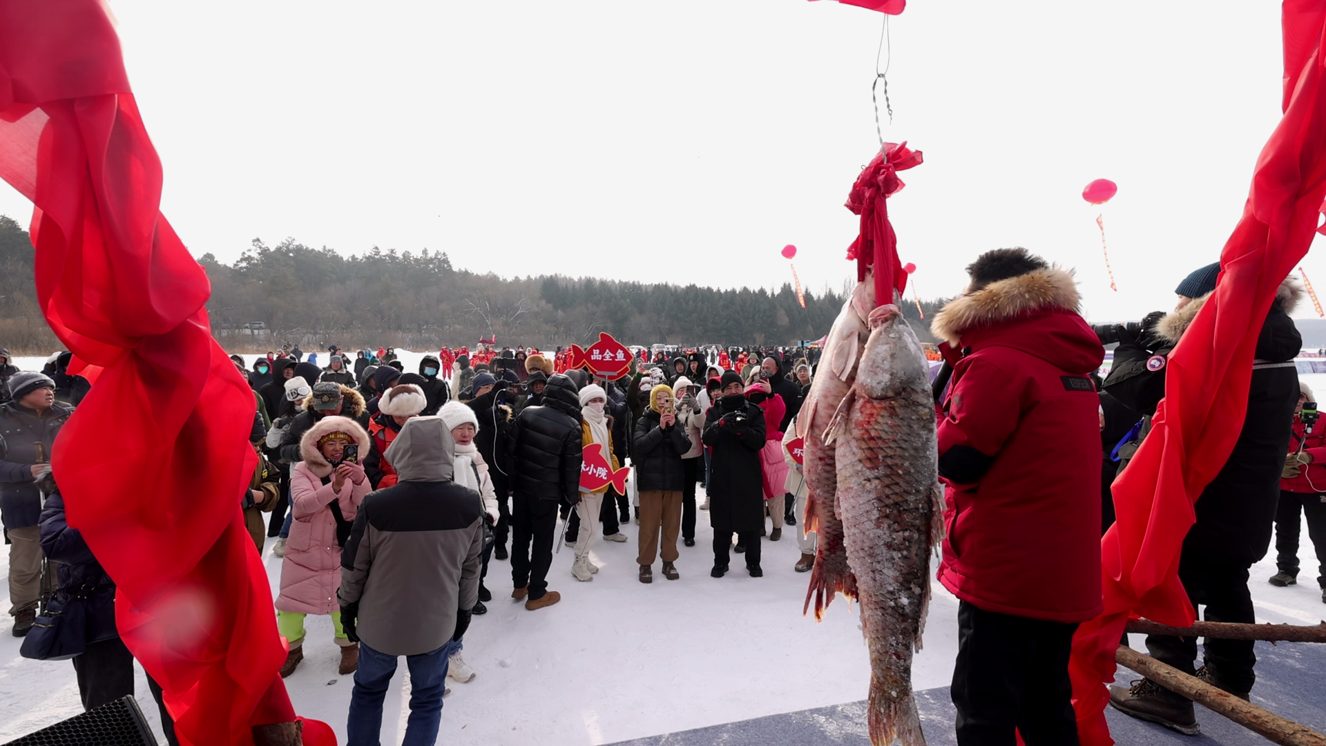 長春凈月潭頭魚拍賣,吸引眾多游客前來“打卡”(央廣網(wǎng)記者 張學龍 攝)