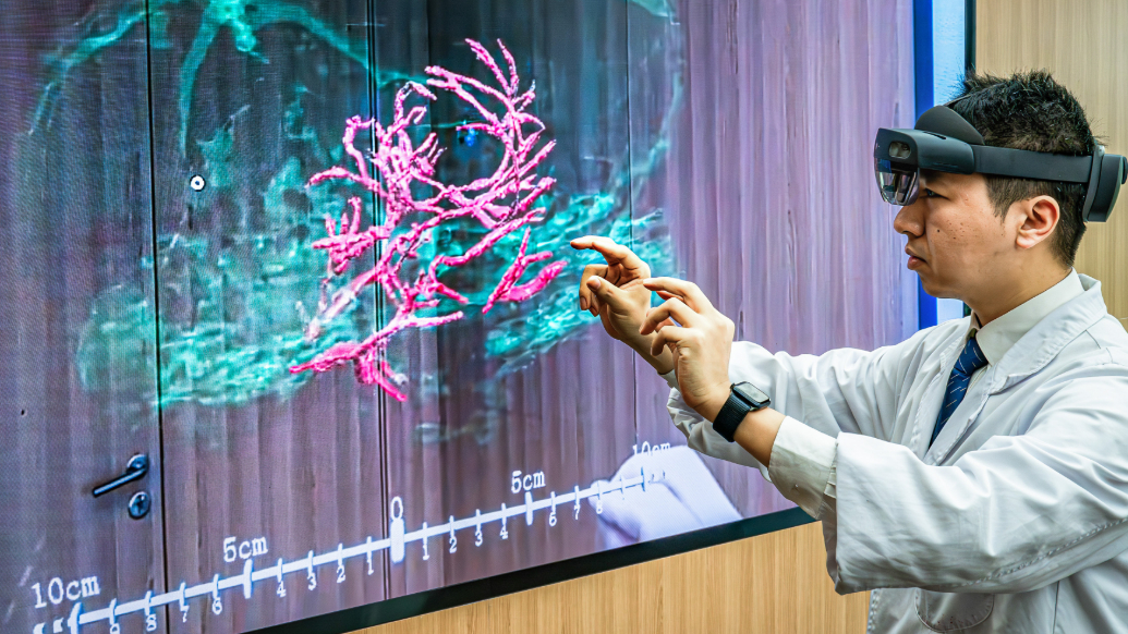 2025年3月26日,科研人員通過微米級腦機接口混合現(xiàn)實,精準(zhǔn)呈現(xiàn)腦機接口與大鼠大腦主要血管和腦組織的空間位置關(guān)系。新華社圖