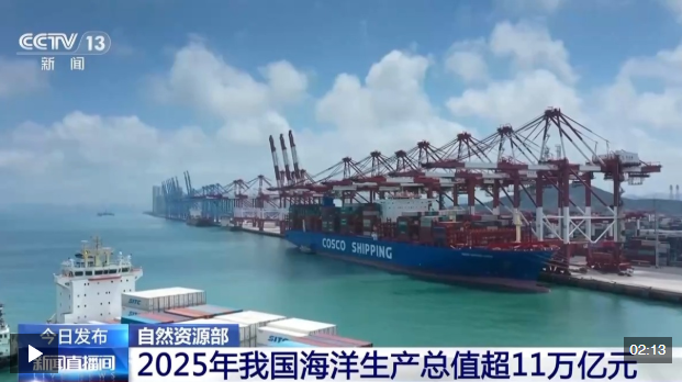 自然資源部今天(3月13日)發(fā)布消息,2025年,我國海洋經(jīng)濟穩(wěn)中有進,海洋生產(chǎn)總值達110180億元,占國內(nèi)生產(chǎn)總值比重7.9%。