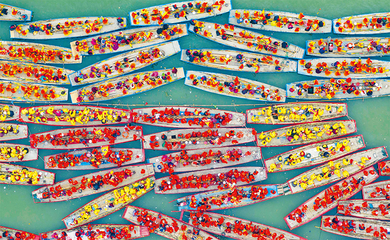 溱潼會(huì)船由南宋相沿至今,歷經(jīng)數(shù)百年傳承,被列入國家級非物質(zhì)文化遺產(chǎn)名錄。圖為2024年4月6日在江蘇省泰州市姜堰區(qū)溱湖國家濕地公園參加會(huì)船表演的船只。 新華社發(fā) 湯德宏/攝
