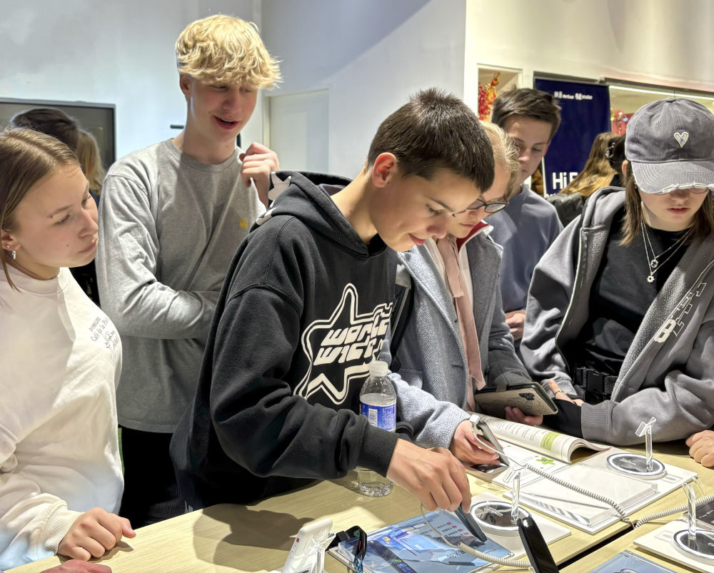 2024年4月9日,中德兩國中學(xué)生在位于北京中關(guān)村軟件園一家企業(yè)參觀。 新華社記者 趙旭 攝