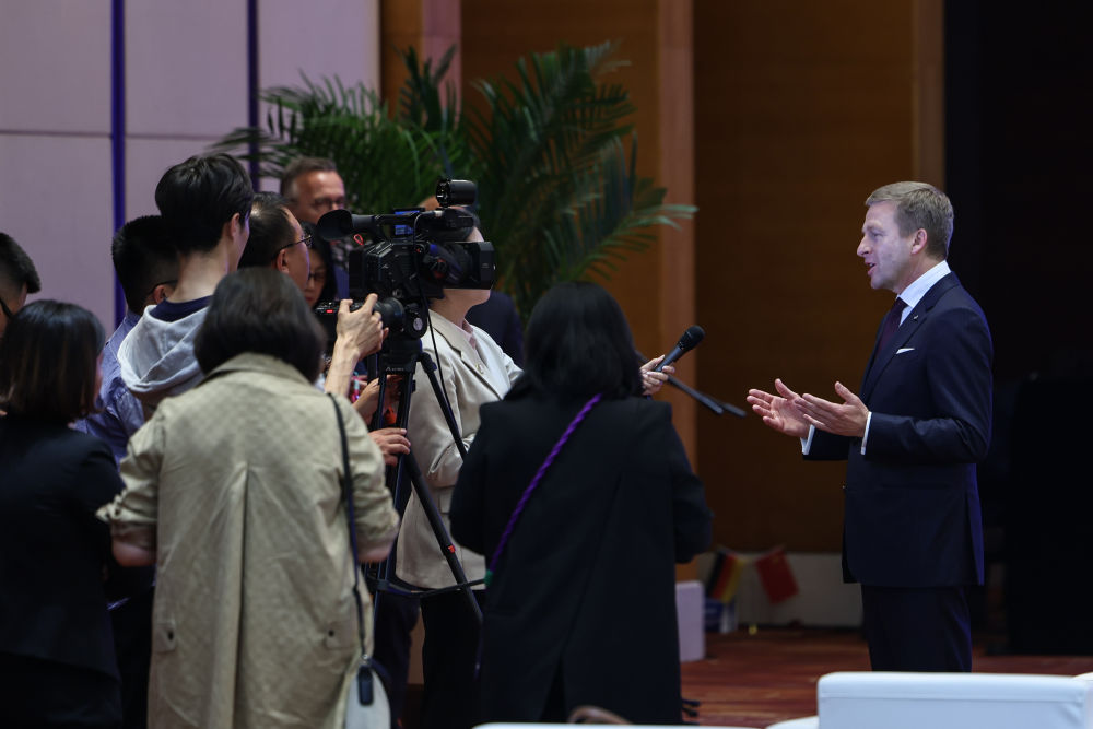 2024年4月26日,遼寧省沈陽市與寶馬集團(tuán)深化戰(zhàn)略合作簽約儀式在沈陽舉行,這是寶馬集團(tuán)董事長齊普策接受采訪?! ⌒氯A社記者 潘昱龍 攝
