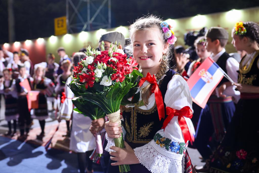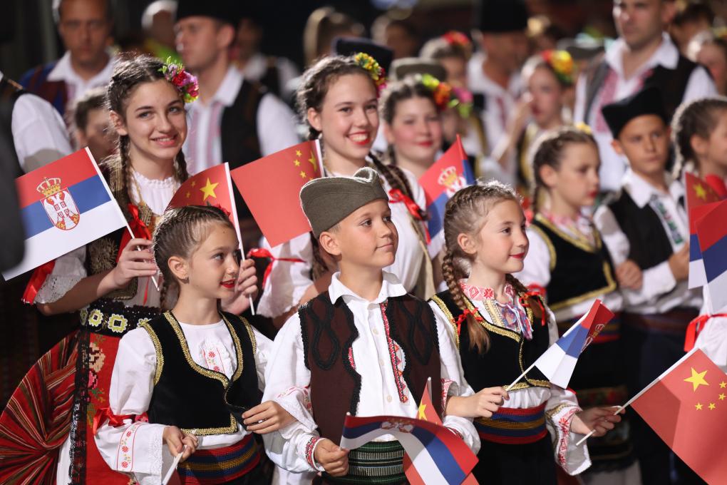武契奇在機(jī)場(chǎng)為習(xí)近平舉行獨(dú)具特色的迎賓儀式。塞爾維亞少年兒童向習(xí)近平和彭麗媛獻(xiàn)花,揮舞中塞兩國(guó)國(guó)旗,身著民族盛裝的塞爾維亞民眾載歌載舞熱烈歡迎。