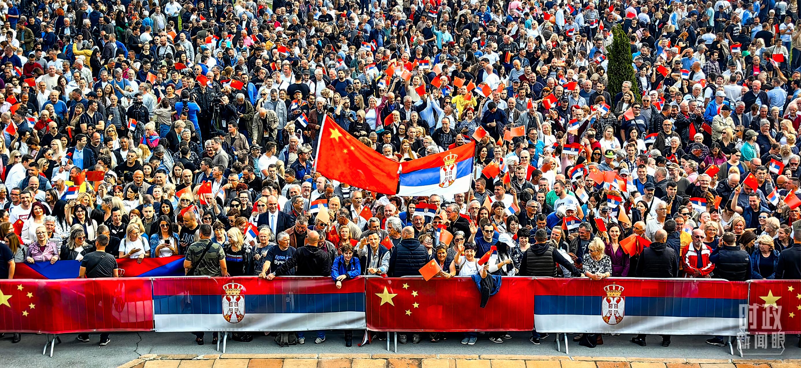 塞爾維亞大廈廣場上,一萬五千名塞爾維亞民眾揮舞中塞兩國國旗,熱烈歡迎習主席到訪。(總臺央視記者段德文拍攝)