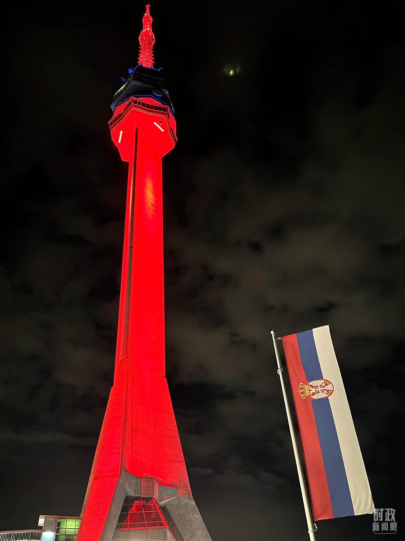 貝爾格萊德夜晚的中國紅。(總臺央視記者李增仁拍攝)