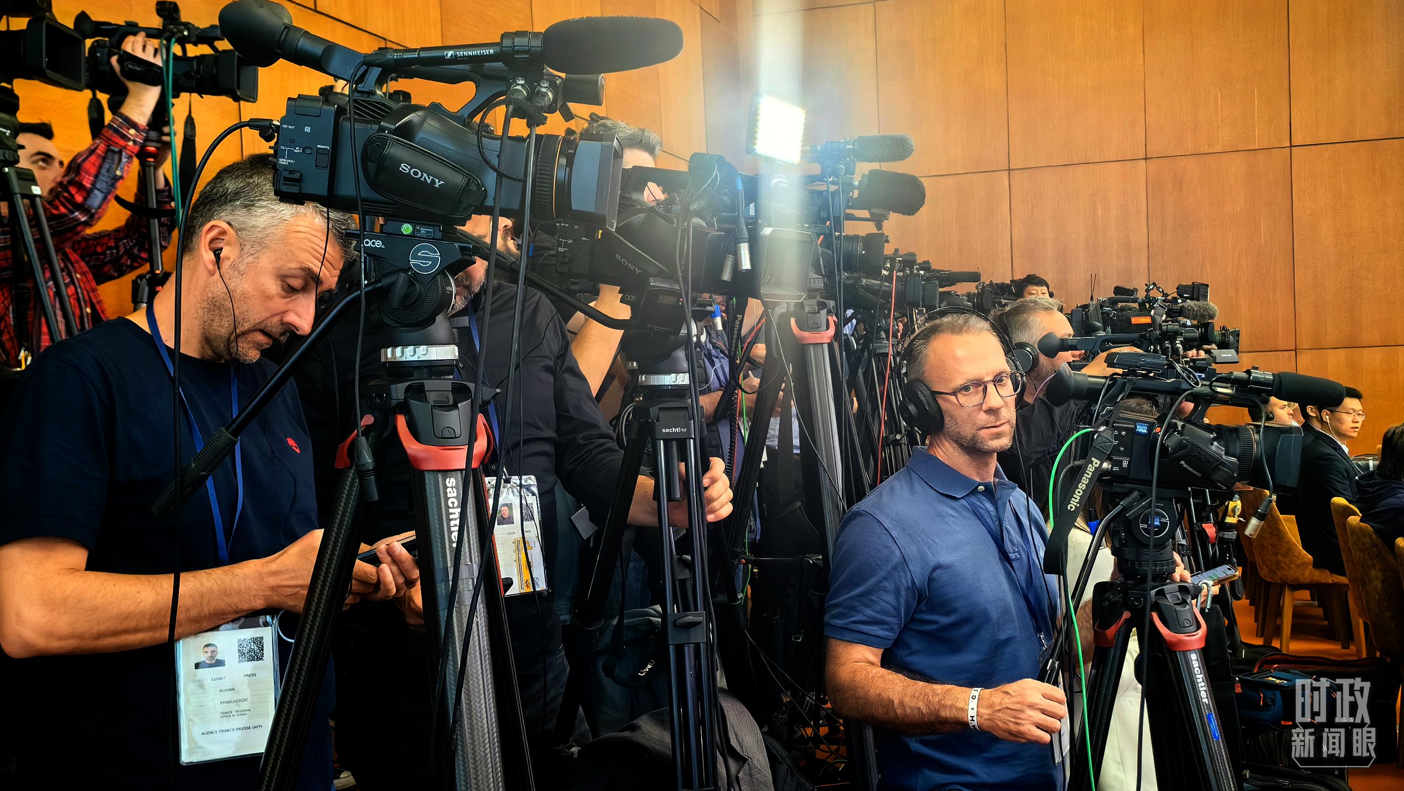 習主席同武契奇總統(tǒng)會談后共同會見記者,這是會見開始前的現(xiàn)場。(總臺央視記者鄂介甫拍攝)