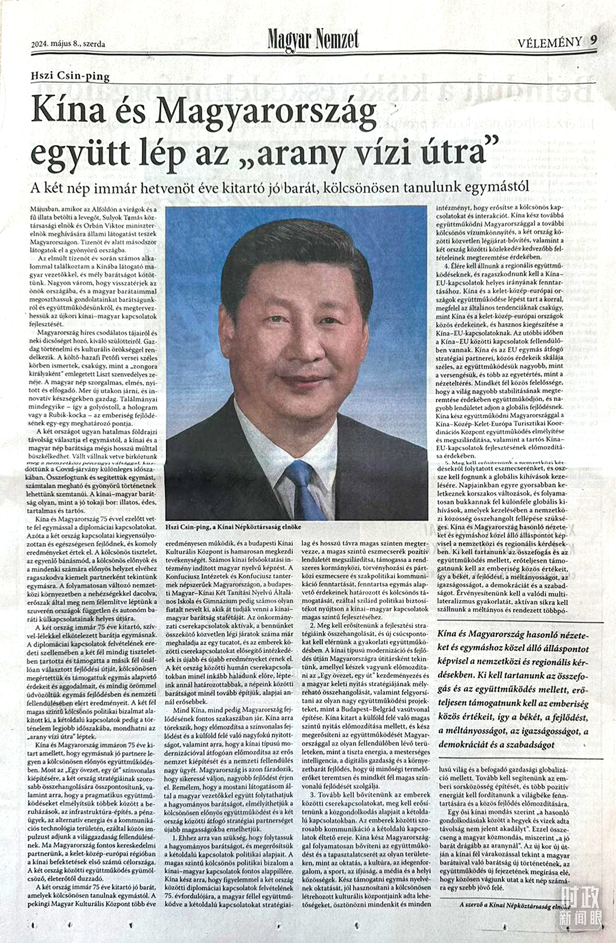 在此訪(fǎng)之際發(fā)表的署名文章中,習(xí)近平主席表示,中方愿以?xún)蓢?guó)建交75周年為契機(jī),同匈方從戰(zhàn)略高度和長(zhǎng)遠(yuǎn)角度對(duì)雙邊關(guān)系作出頂層設(shè)計(jì)。