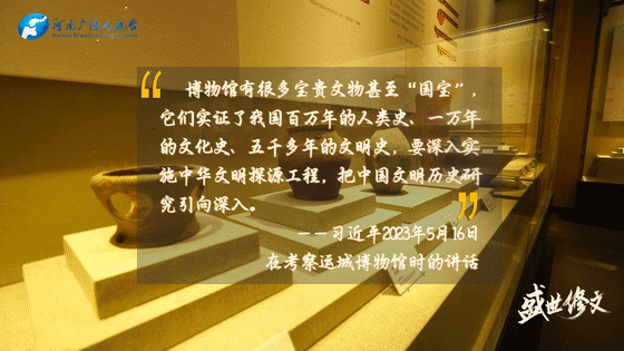 他強(qiáng)調(diào),博物館有很多寶貴文物甚至“國(guó)寶”,它們實(shí)證了我國(guó)百萬年的人類史、一萬年的文化史、五千多年的文明史,要深入實(shí)施中華文明探源工程,把中國(guó)文明歷史研究引向深入。