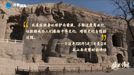 云岡石窟是世界文化遺產(chǎn),保護(hù)好云岡石窟,不僅具有中國(guó)意義,而且具有世界意義。歷史文化遺產(chǎn)是不可再生、不可替代的寶貴資源,要始終把保護(hù)放在第一位。