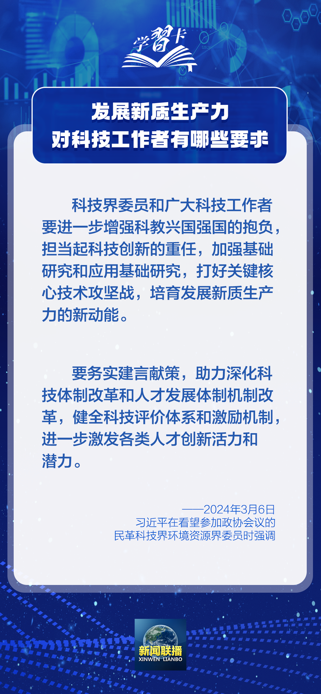2024年5月30日是第八個(gè)“全國科技工作者日”。實(shí)現(xiàn)科技自立自強(qiáng)、建設(shè)世界科技強(qiáng)國,廣大科技工作者責(zé)任重大、使命光榮。培育發(fā)展新質(zhì)生產(chǎn)力的新動(dòng)能,廣大科技工作者可以怎么做?習(xí)近平總書記的一系列論述指明了方向。一起學(xué)習(xí)↓↓↓