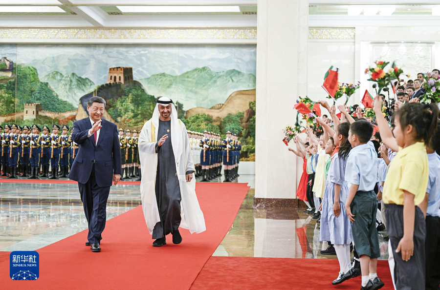 5月30日下午,國家主席習近平在北京人民大會堂同來華國事訪問并出席中國-阿拉伯國家合作論壇第十屆部長級會議開幕式的阿聯(lián)酋總統(tǒng)穆罕默德舉行會談。