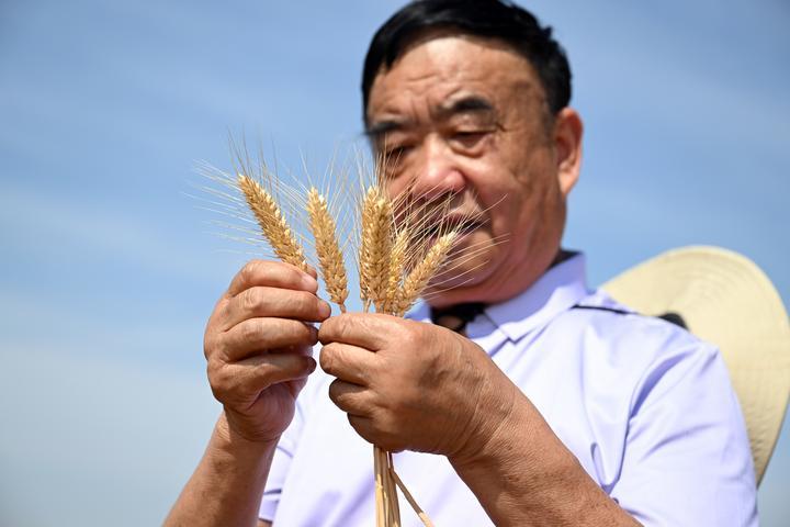 日頭正盛,71歲的種糧大戶徐淙祥深入田間,和農(nóng)技專家們一起為試驗麥種測產(chǎn)?!八氪笞讯嗔o枬M,又是一個豐收年!”徐淙祥高興地說。