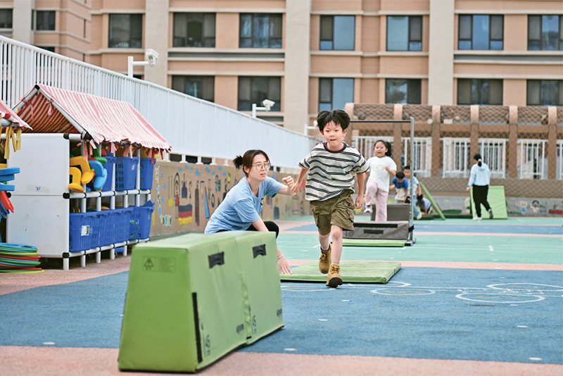 近年來(lái),河北雄安新區(qū)通過(guò)創(chuàng)新教育發(fā)展體制機(jī)制、高標(biāo)準(zhǔn)配建教育設(shè)施、引入專(zhuān)業(yè)教師隊(duì)伍、引進(jìn)優(yōu)質(zhì)教育資源等方式,不斷推動(dòng)教育高質(zhì)量發(fā)展。圖為2024年5月23日,當(dāng)?shù)赜變簣@的孩子們?cè)谑彝饣顒?dòng)。 新華社記者 牟宇/攝