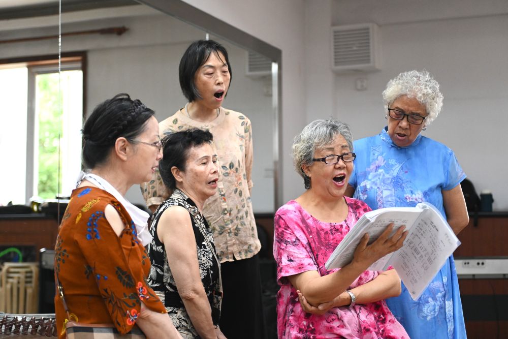 6月20日,寧夏銀川市金鳳區(qū)長(zhǎng)城花園社區(qū)居民在練習(xí)唱歌。