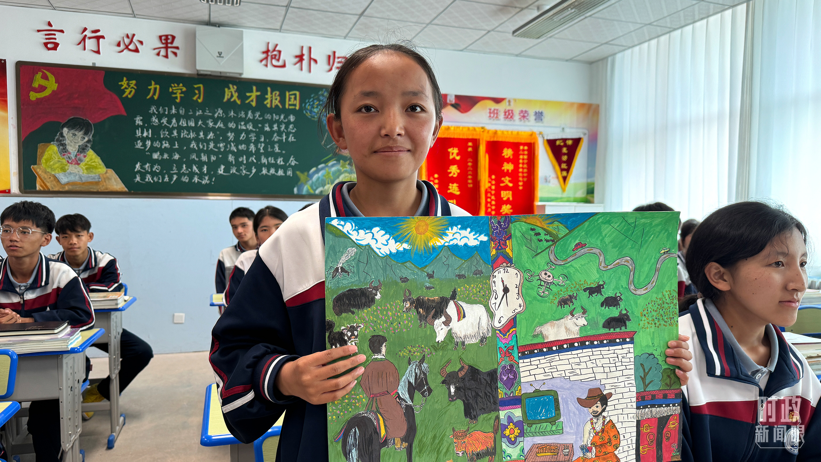 果洛西寧民族中學(xué)高一(1)班的“新時代、新家鄉(xiāng)”主題思政課。(總臺央視記者段德文拍攝)