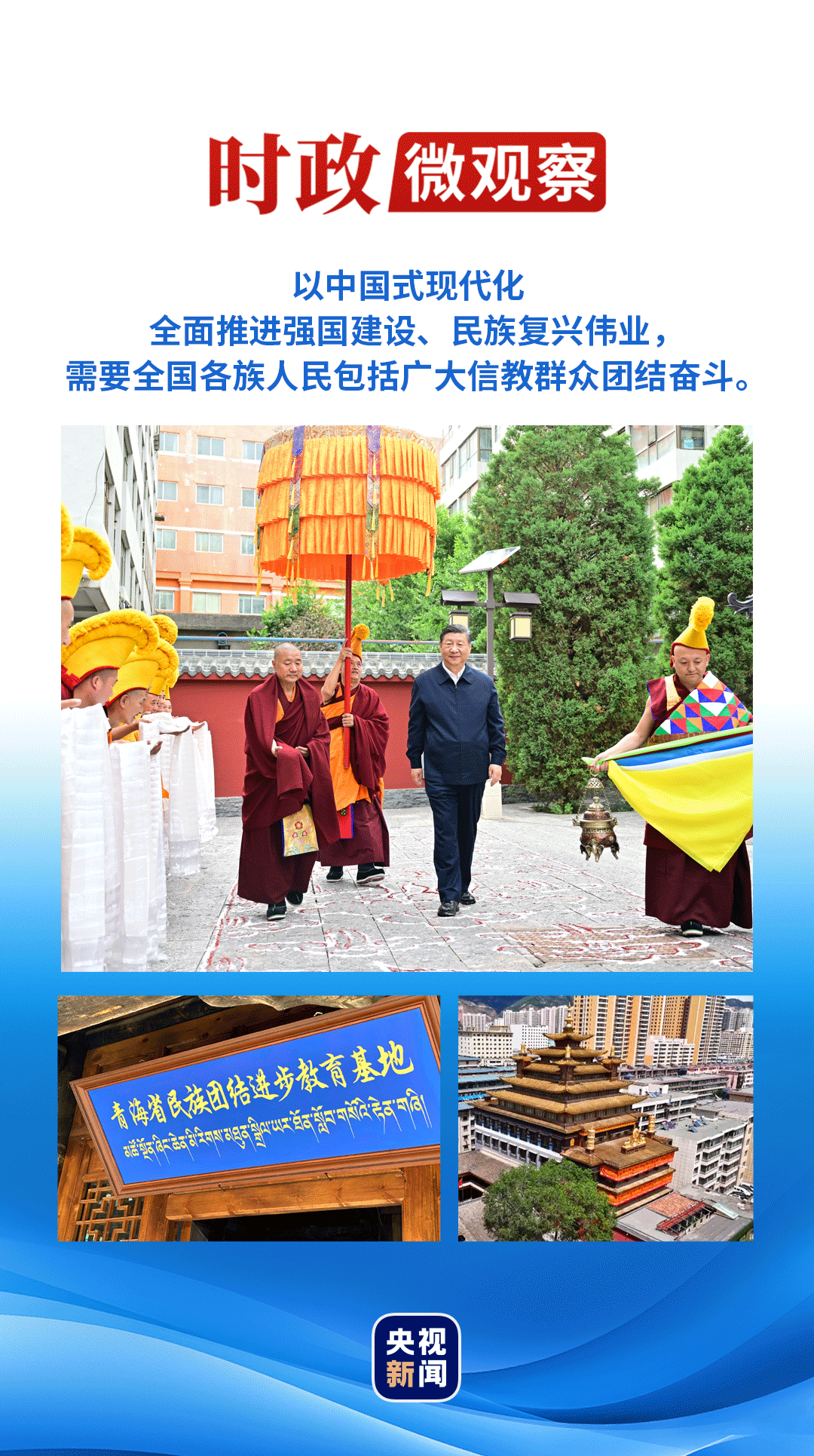 此次在青??疾鞎r,總書記重申,希望青海藏傳佛教界弘揚愛國愛教優(yōu)良傳統(tǒng),促進宗教和順、社會和諧、民族和睦,在中國式現(xiàn)代化進程中發(fā)揮積極作用。