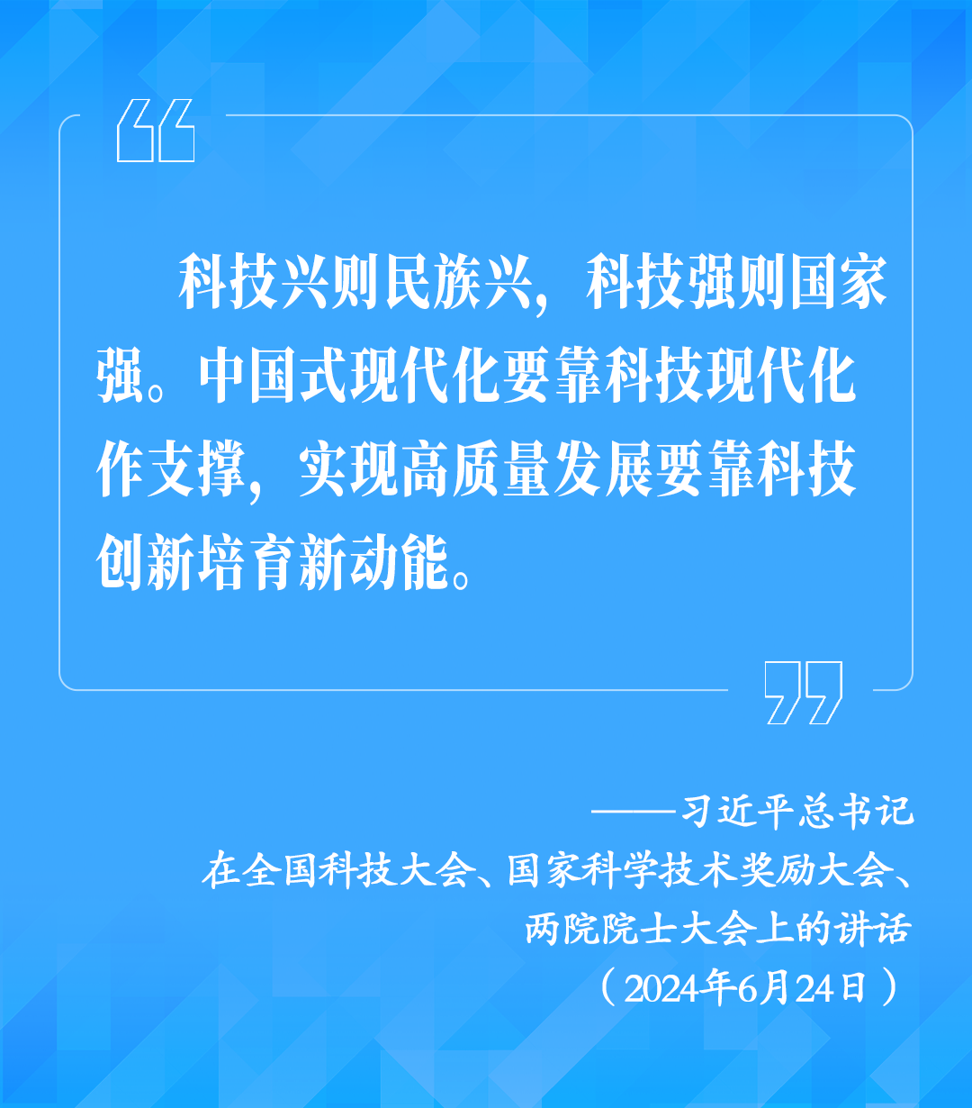 6月24日,全國(guó)科技大會(huì)、國(guó)家科學(xué)技術(shù)獎(jiǎng)勵(lì)大會(huì)、兩院院士大會(huì)在北京召開(kāi),習(xí)近平總書(shū)記為國(guó)家最高科學(xué)技術(shù)獎(jiǎng)獲得者等頒獎(jiǎng)并發(fā)表重要講話。總書(shū)記強(qiáng)調(diào),科技興則民族興,科技強(qiáng)則國(guó)家強(qiáng)。中國(guó)式現(xiàn)代化要靠科技現(xiàn)代化作支撐,實(shí)現(xiàn)高質(zhì)量發(fā)展要靠科技創(chuàng)新培育新動(dòng)能。