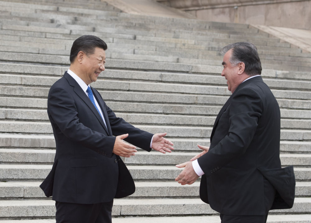 2019年6月15日,國家主席習(xí)近平在杜尚別出席儀式,接受塔吉克斯坦總統(tǒng)拉赫蒙授予“王冠勛章”。
