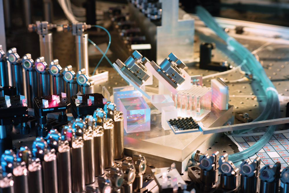 在中國(guó)科學(xué)技術(shù)大學(xué)拍攝的用于“九章三號(hào)”實(shí)驗(yàn)的光學(xué)干涉儀(2023 年 10 月 15 日攝) 中國(guó)科學(xué)技術(shù)大學(xué)供圖