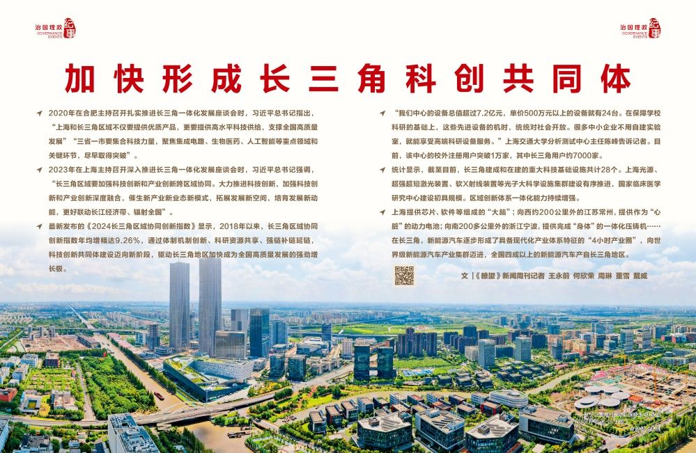 最新發(fā)布的《2024長(zhǎng)三角區(qū)域協(xié)同創(chuàng)新指數(shù)》顯示,2018年以來(lái),長(zhǎng)三角區(qū)域協(xié)同創(chuàng)新指數(shù)年均增幅達(dá)9.26%,通過(guò)體制機(jī)制創(chuàng)新、科研資源共享、強(qiáng)鏈補(bǔ)鏈延鏈,科技創(chuàng)新共同體建設(shè)邁向新階段,驅(qū)動(dòng)長(zhǎng)三角地區(qū)加快成為全國(guó)高質(zhì)量發(fā)展的強(qiáng)勁增長(zhǎng)極。