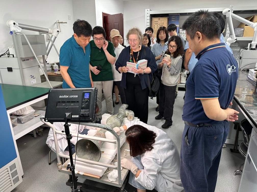 2024年5月28日,英國考古學(xué)家、牛津大學(xué)教授杰西卡·羅森在文物保護(hù)修復(fù)實驗室觀摩文物。新華社發(fā)(四川省文物考古研究院供圖)