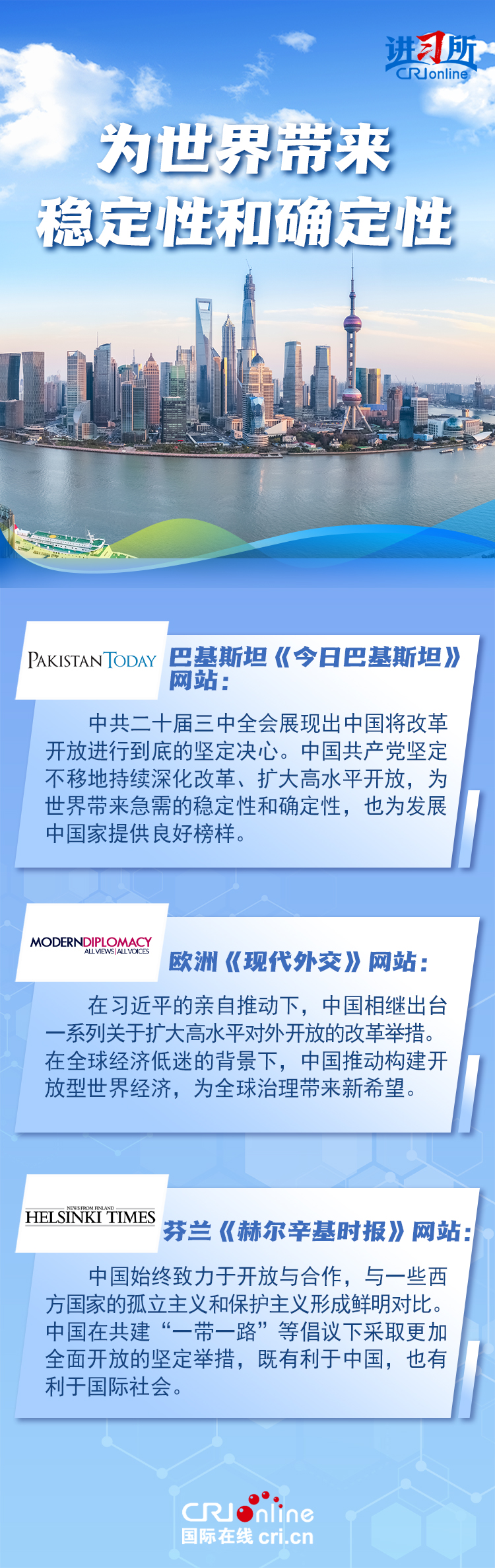 中共二十屆三中全會(huì)審議通過(guò)的《中共中央關(guān)于進(jìn)一步全面深化改革、推進(jìn)中國(guó)式現(xiàn)代化的決定》強(qiáng)調(diào),必須堅(jiān)持對(duì)外開(kāi)放基本國(guó)策,堅(jiān)持以開(kāi)放促改革,建設(shè)更高水平開(kāi)放型經(jīng)濟(jì)新體制,并對(duì)完善高水平對(duì)外開(kāi)放體制機(jī)制提出重要改革措施。