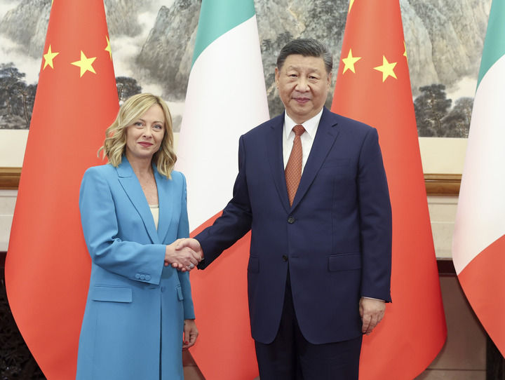 7月29日下午,國家主席習近平在北京釣魚臺國賓館會見來華進行正式訪問的意大利總理梅洛尼。