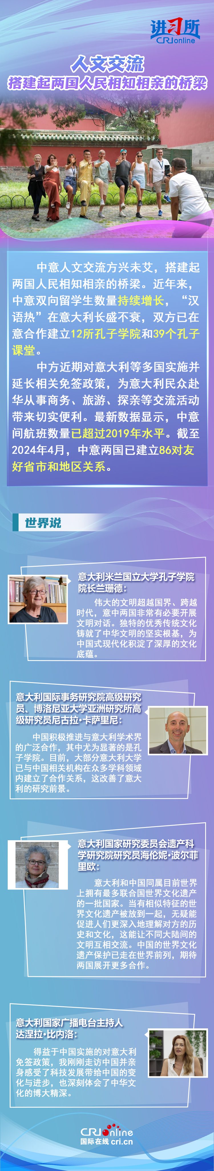 梅洛尼表示,中國對意大利而言是一個極為重要的經(jīng)貿和文化合作伙伴。意大利各界人士認為,中意并肩同行會創(chuàng)造更多的經(jīng)濟奇跡,同時兩國非常有必要開展文明對話,期待未來兩國展開更多領域合作,開啟全面戰(zhàn)略伙伴關系新階段。