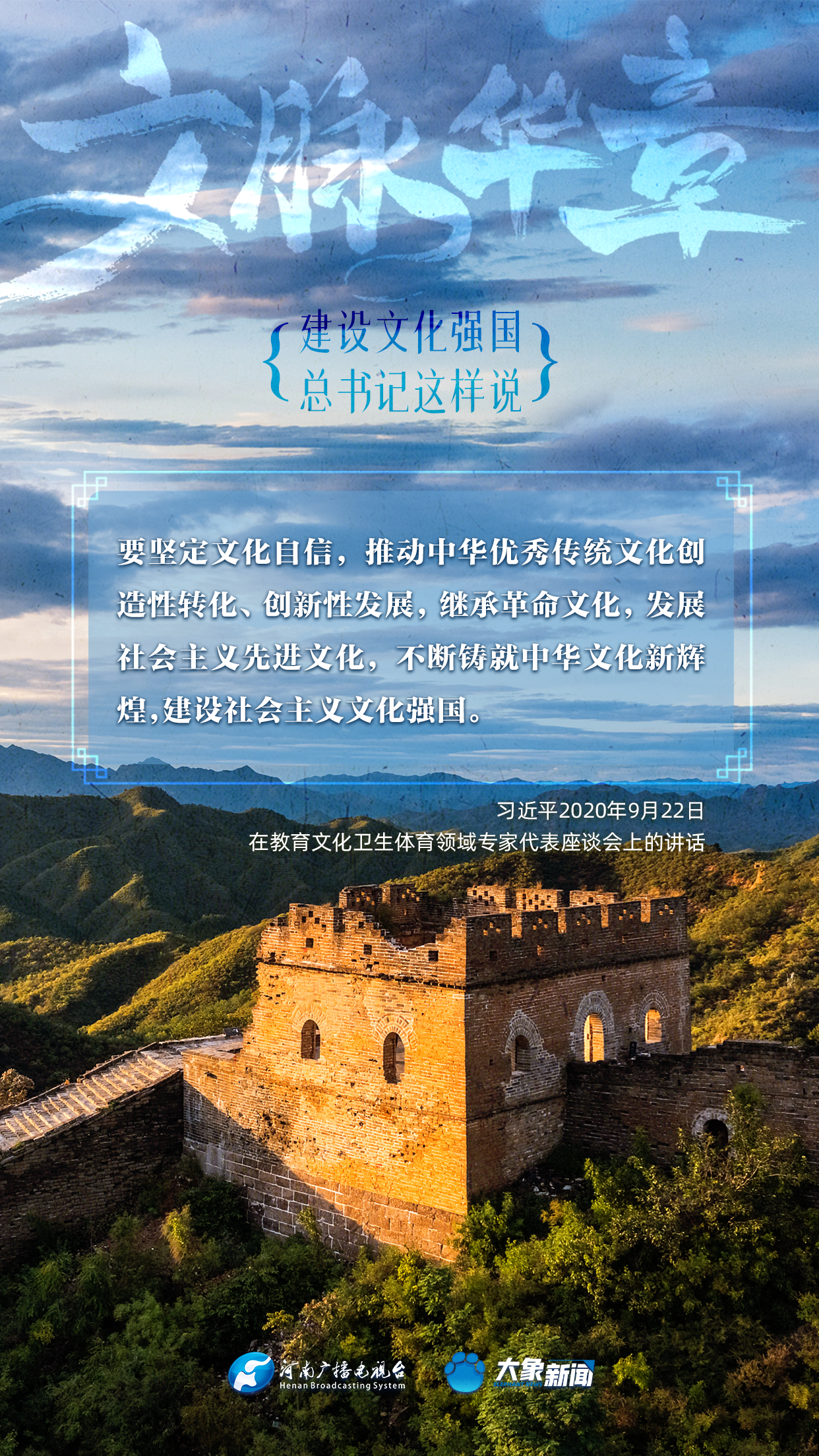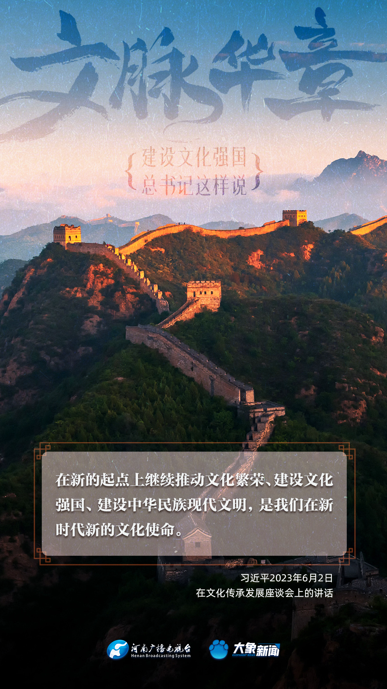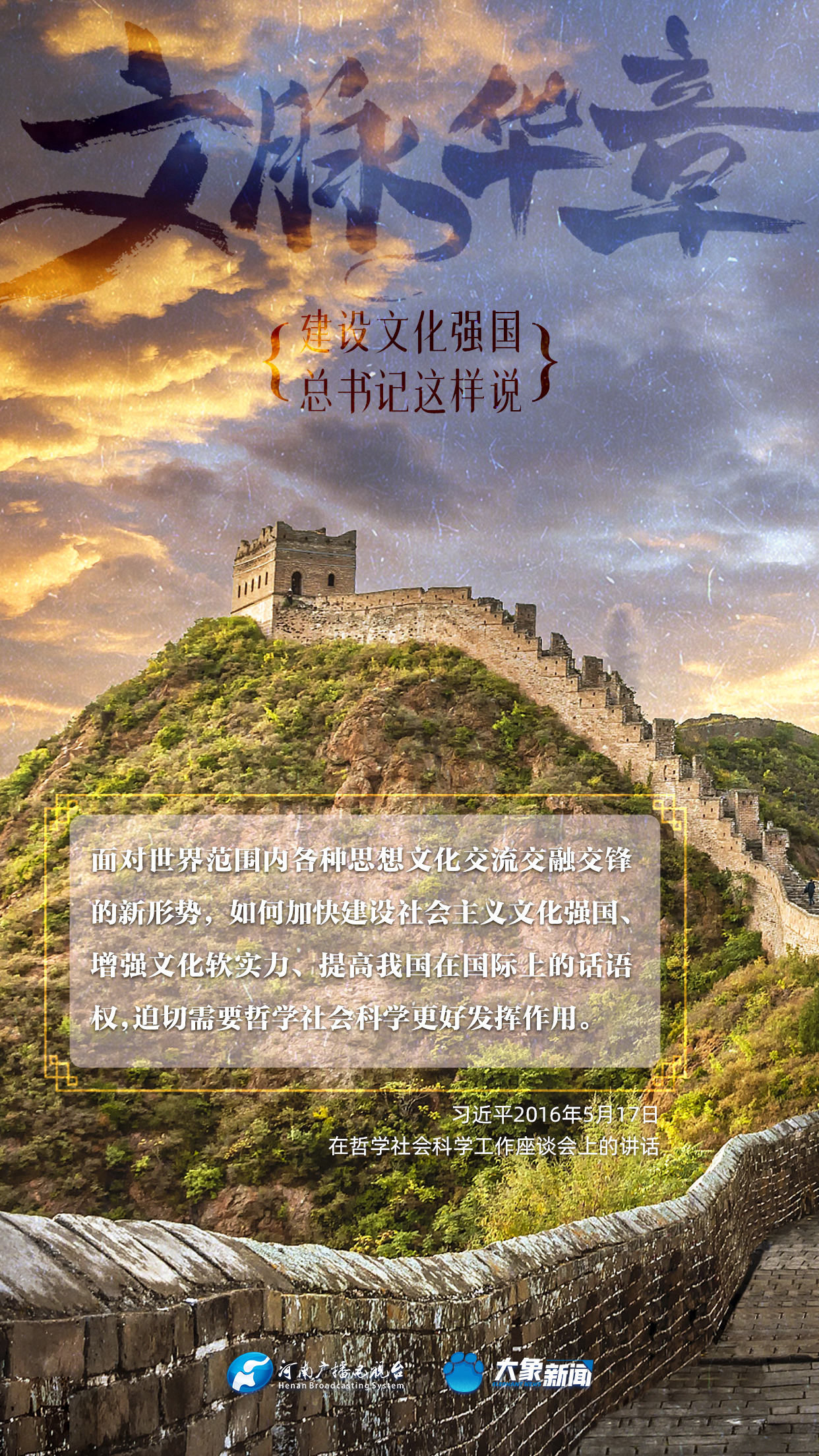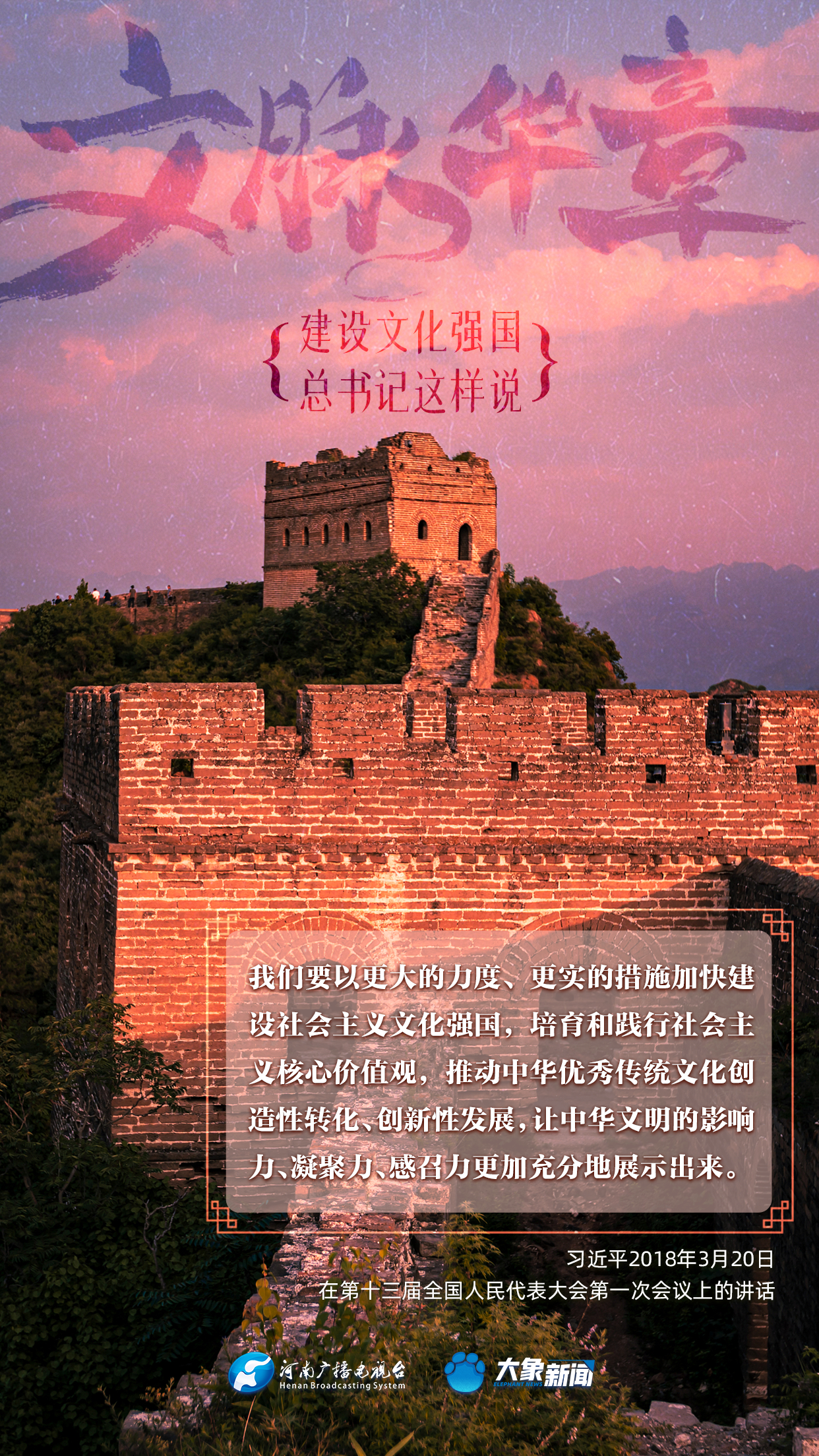 黨的十八大以來,習近平總書記站在全局和戰(zhàn)略高度,就建設(shè)社會主義文化強國提出一系列新思想新觀點新論斷,為我們堅定文化自信,堅持中國特色社會主義文化發(fā)展道路,提供了指引。大象新聞與您一起學習、領(lǐng)悟。