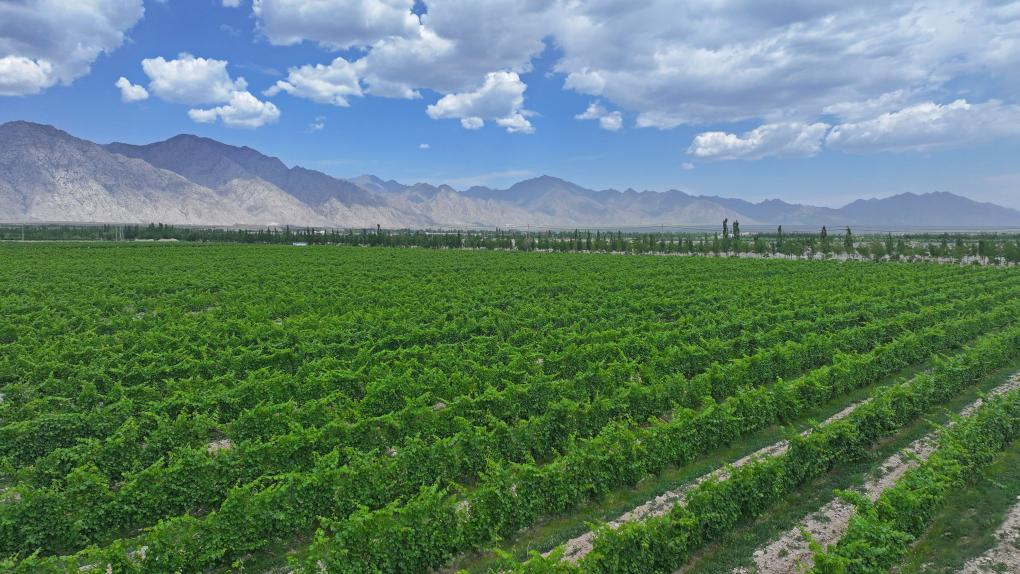 閩寧鎮(zhèn)地處寧夏賀蘭山東麓。這里日照充足、熱量和礦物質豐富、土壤透氣性好、晝夜溫差大、降水量少,是葡萄種植的黃金地帶。