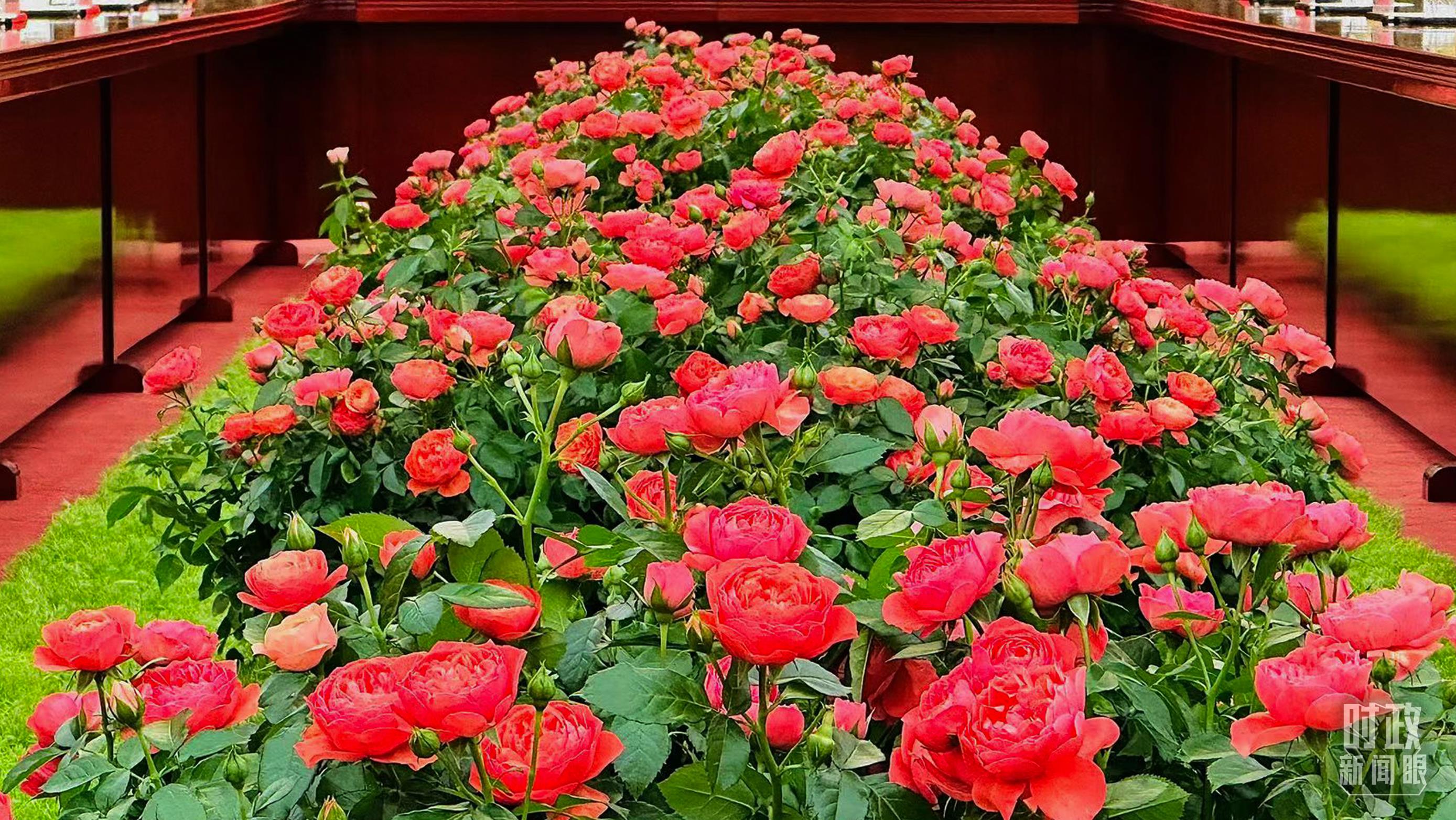 東大廳會(huì)談桌中間擺放的紅果汁月季,象征著蓬勃與堅(jiān)韌。(總臺(tái)央視記者范一鳴拍攝)