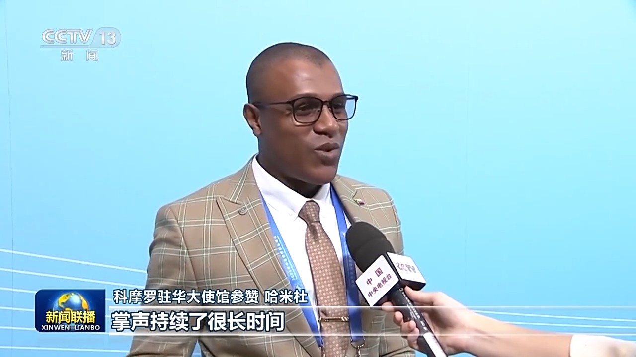 科摩羅駐華大使館參贊 哈米杜:每一個(gè)在現(xiàn)場(chǎng)聆聽講話的人都感到很振奮。大家都在鼓掌,掌聲持續(xù)了很長(zhǎng)時(shí)間。中非關(guān)系整體定位提升至新時(shí)代全天候中非命運(yùn)共同體,它將為非洲的發(fā)展帶來更多機(jī)遇,將促進(jìn)中非雙方以及非洲國(guó)家之間的交流合作。