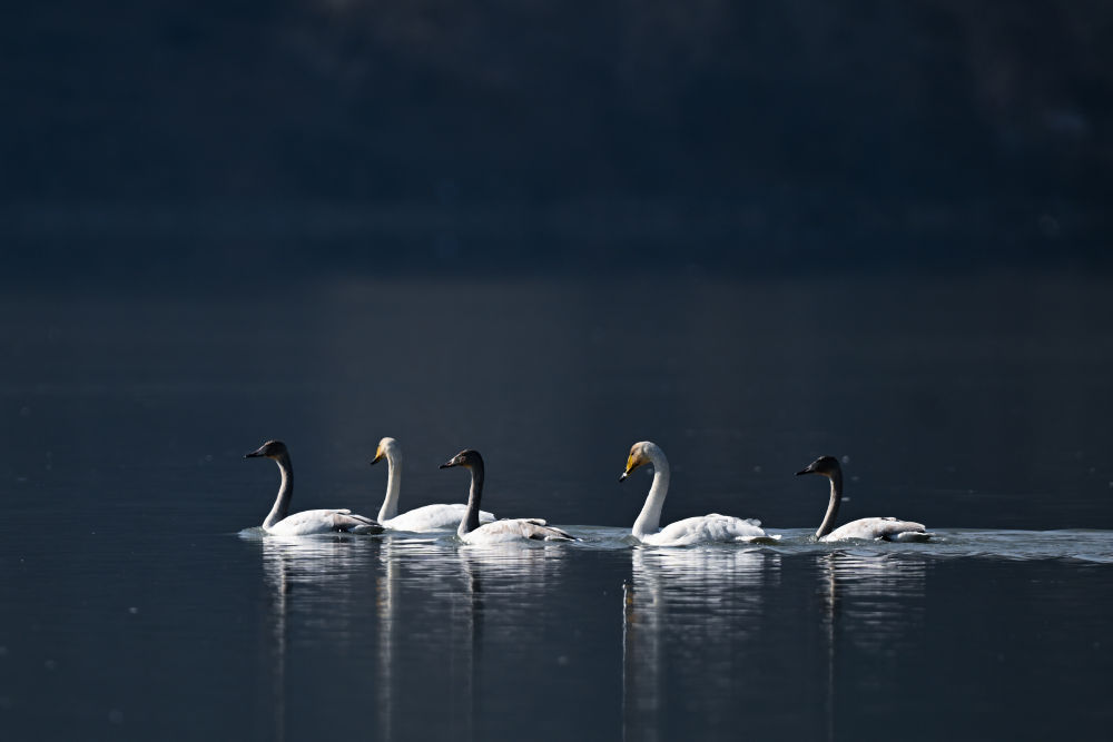 2023年11月30日,天鵝在青海省海東市化隆回族自治縣群科鎮(zhèn)境內(nèi)的黃河上游弋。近年來,青海省加大力度保護(hù)治理境內(nèi)黃河流域,改善當(dāng)?shù)厣鷳B(tài)環(huán)境,為越冬候鳥提供良好棲息地。