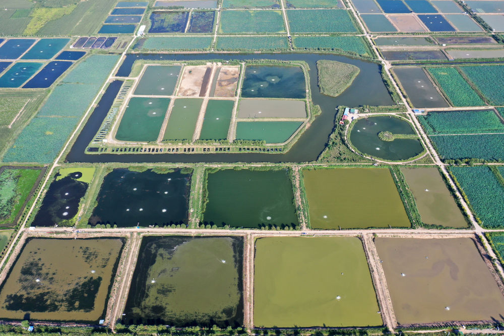 2024年8月13日在山西省臨猗縣薛公村拍攝的蟹塘(無人機(jī)照片)。薛公村位于黃河岸邊,有5000多畝黃河灘涂和近5000畝荒溝。當(dāng)?shù)赝ㄟ^將荒溝和灘涂進(jìn)行整合,發(fā)展特色水產(chǎn)養(yǎng)殖,讓守著黃河水、住在黃河灘的薛公村村民有了新的致富路。