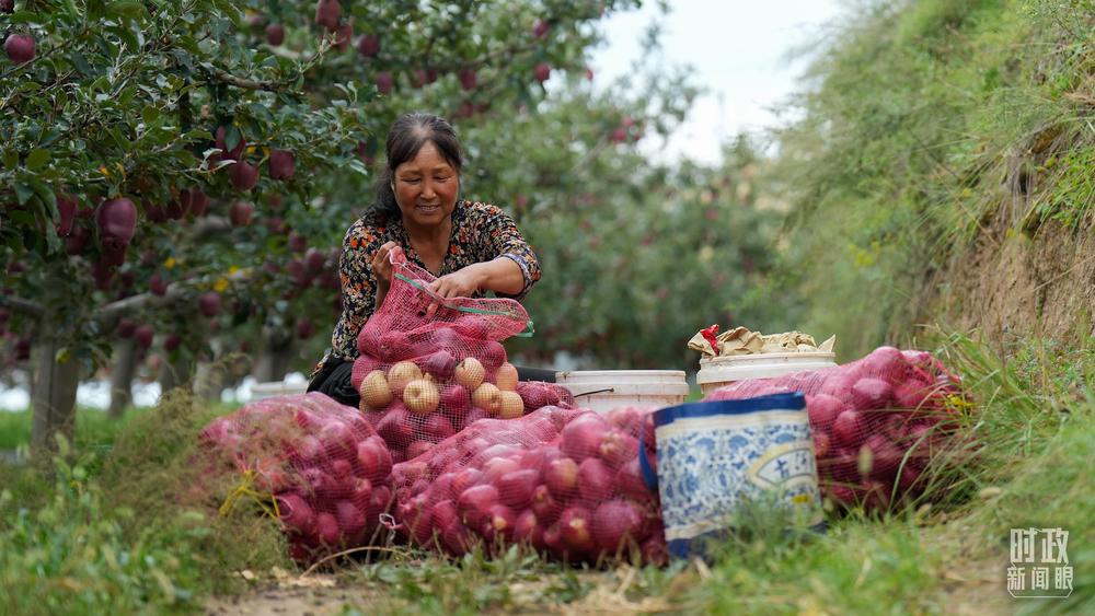 △南山花牛蘋果基地在2023年帶動9000多戶村民實現(xiàn)增收。(總臺國廣記者李晉拍攝)