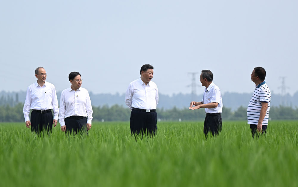 2022年6月8日上午,習(xí)近平在四川眉山市東坡區(qū)太和鎮(zhèn)永豐村高標(biāo)準(zhǔn)水稻種植基地考察,了解水稻試驗(yàn)育種和種植推廣情況。習(xí)近平強(qiáng)調(diào):推進(jìn)農(nóng)業(yè)現(xiàn)代化,既要靠農(nóng)業(yè)專家,也要靠廣大農(nóng)民。要加強(qiáng)現(xiàn)代農(nóng)業(yè)科技推廣應(yīng)用和技術(shù)培訓(xùn),把種糧大戶組織起來,積極發(fā)展綠色農(nóng)業(yè)、生態(tài)農(nóng)業(yè)、高效農(nóng)業(yè)。我們有信心、有底氣把中國人的飯碗牢牢端在自己手中。
