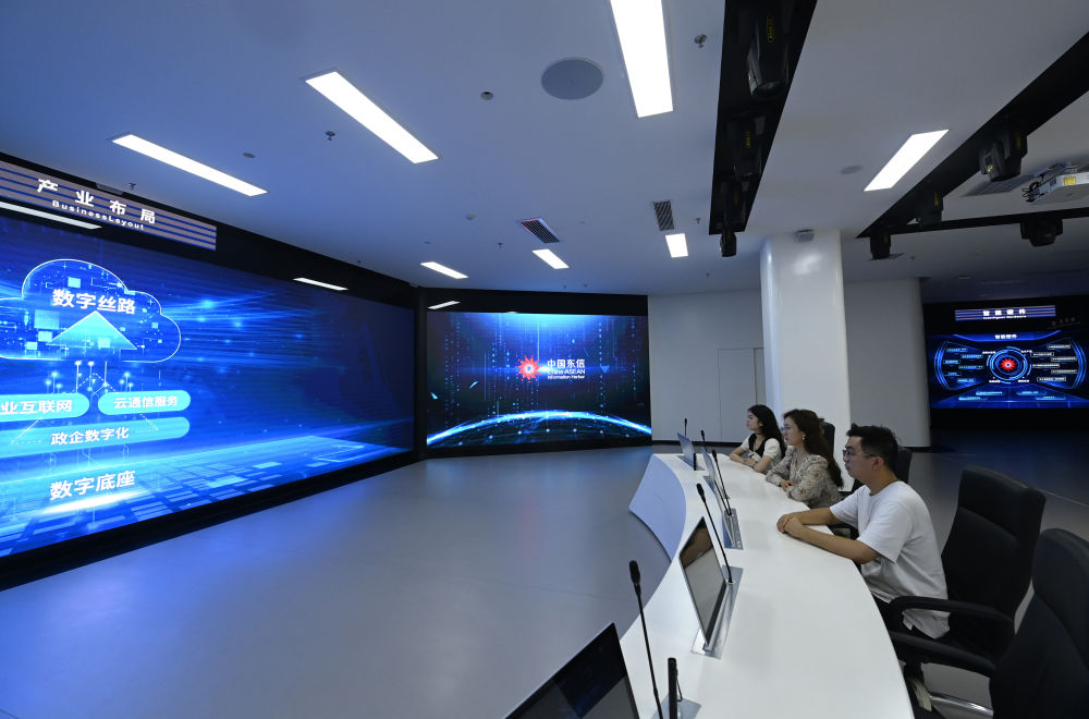 2023年12月12日拍攝的中國-東盟信息港股份有限公司內(nèi)景。歷經(jīng)多年建設(shè),中國-東盟信息港正努力打造面向東盟的國際通信大通道、大數(shù)據(jù)資源應(yīng)用服務(wù)大樞紐、新一代信息技術(shù)應(yīng)用示范高地、數(shù)字經(jīng)濟(jì)開放合作集聚區(qū)和人文交流合作中心。