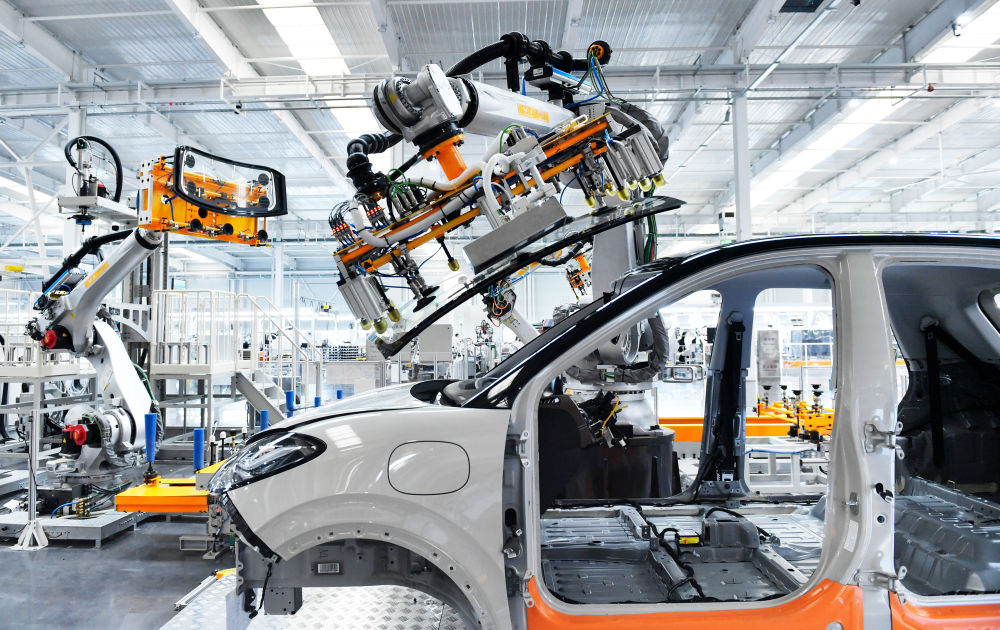 在廣西柳州市上汽通用五菱精益智造工廠,機(jī)器人為汽車裝配擋風(fēng)玻璃(2024年5月9日攝)。上汽通用五菱建成的“柳州研發(fā)和零部件生產(chǎn)—印尼整車組裝和市場銷售”產(chǎn)業(yè)鏈,是中國與東盟國家不斷深化投資和產(chǎn)能合作的生動(dòng)縮影。
