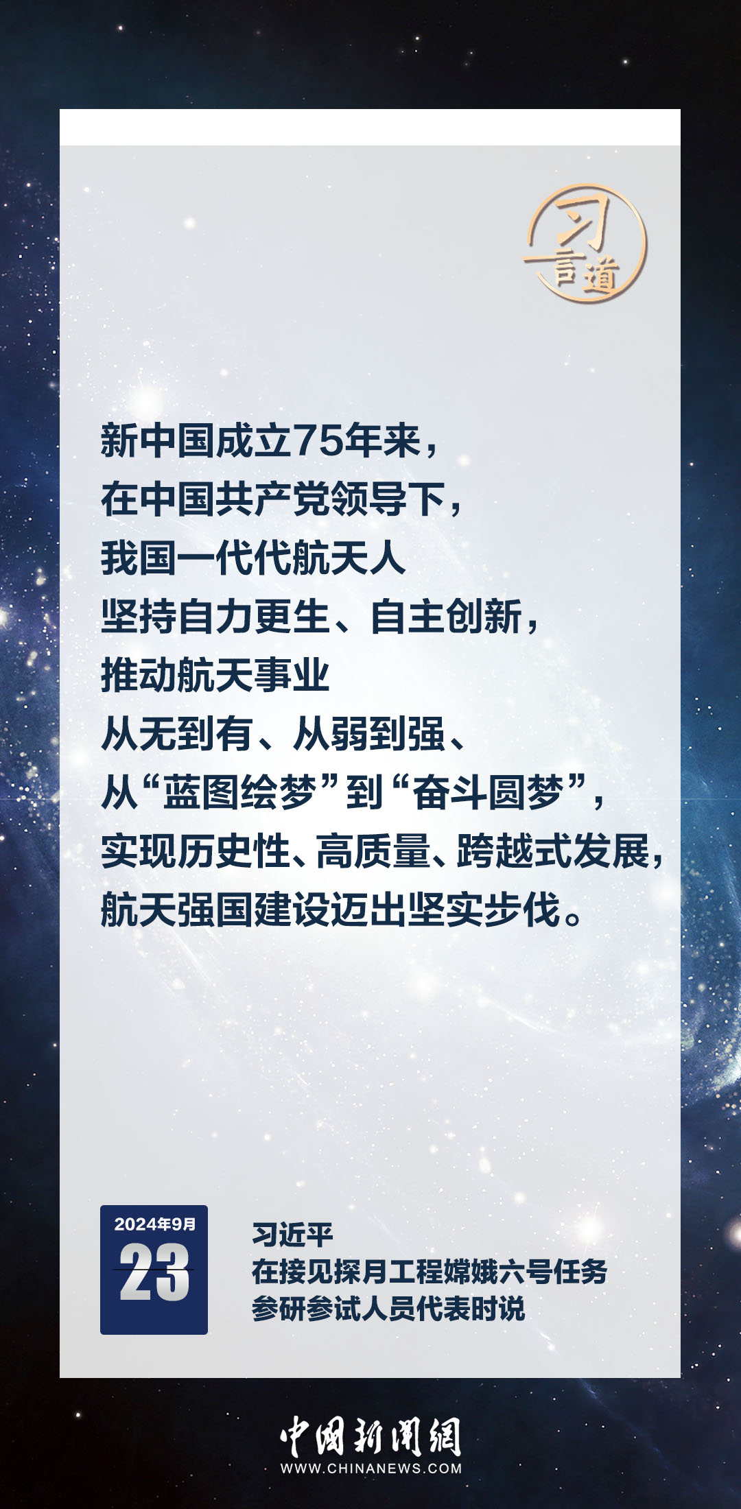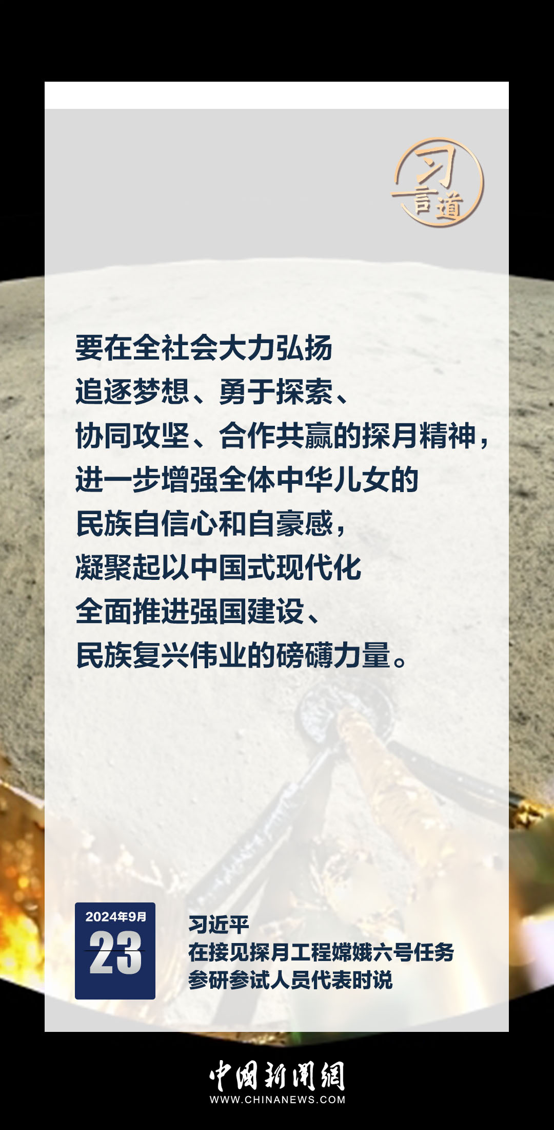 中共中央總書記、國家主席、中央軍委主席習近平23日在人民大會堂接見探月工程嫦娥六號任務參研參試人員代表時發(fā)表重要講話。習近平指出——