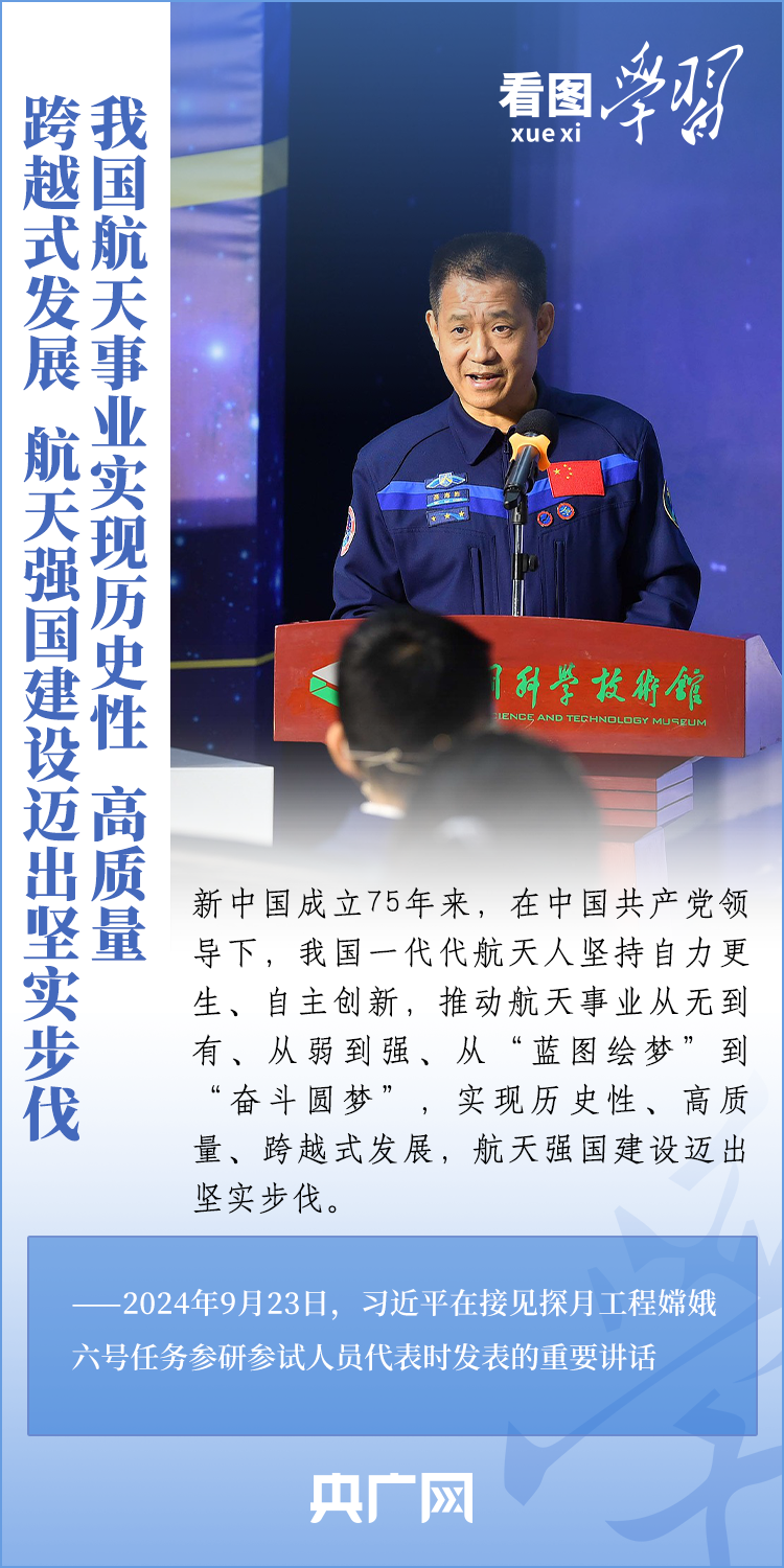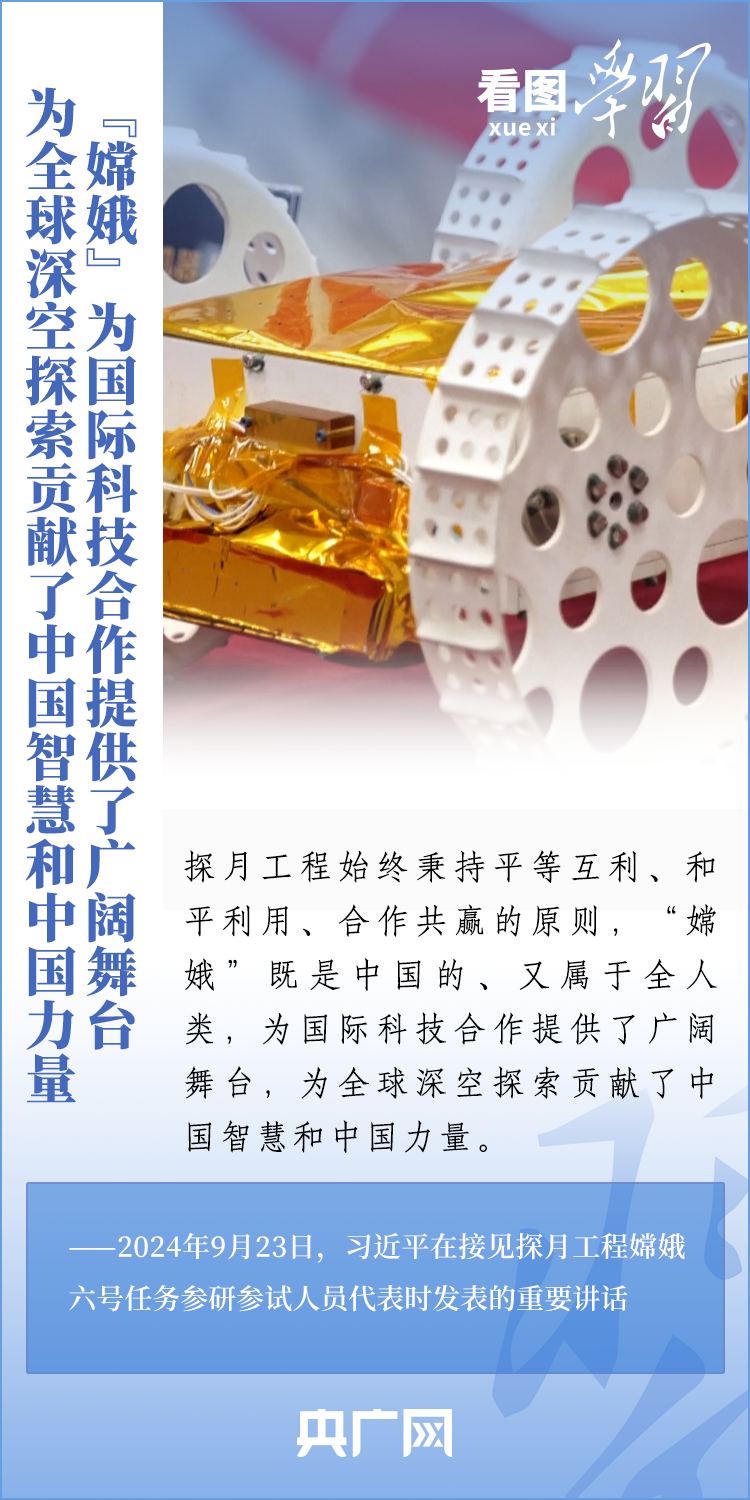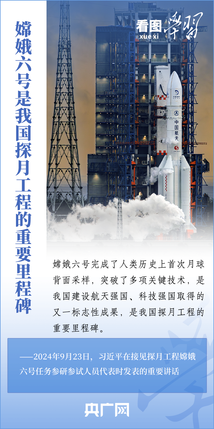 中國探月工程成果凝結(jié)著我國幾代航天人的智慧和心血。9月23日,習(xí)近平總書記接見探月工程嫦娥六號任務(wù)參研參試人員代表并發(fā)表重要講話??倳浉叨瓤隙ㄦ隙鹆柸蝿?wù)成功的重要意義,以及探月工程為我國航天事業(yè)發(fā)展、為人類探索宇宙空間作出的重大貢獻(xiàn),勉勵航天戰(zhàn)線工作者再接再厲、乘勢而上,為建設(shè)航天強國再立新功。一起來學(xué)習(xí)!