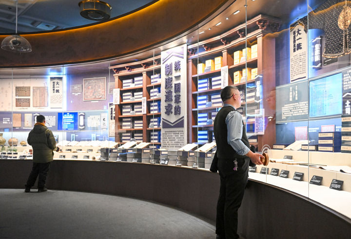 2023年12月23日,參觀者在北京民族文化宮參觀鑄牢中華民族共同體意識(shí)文物古籍展。新華社記者 郝建偉 攝