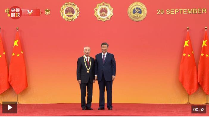 中華人民共和國國家勛章和國家榮譽稱號頒授儀式9月29日上午10時在人民大會堂隆重舉行。中共中央總書記、國家主席、中央軍委主席習(xí)近平向“體育工作杰出貢獻者”國家榮譽稱號獲得者張燮林頒授獎?wù)隆?/p>