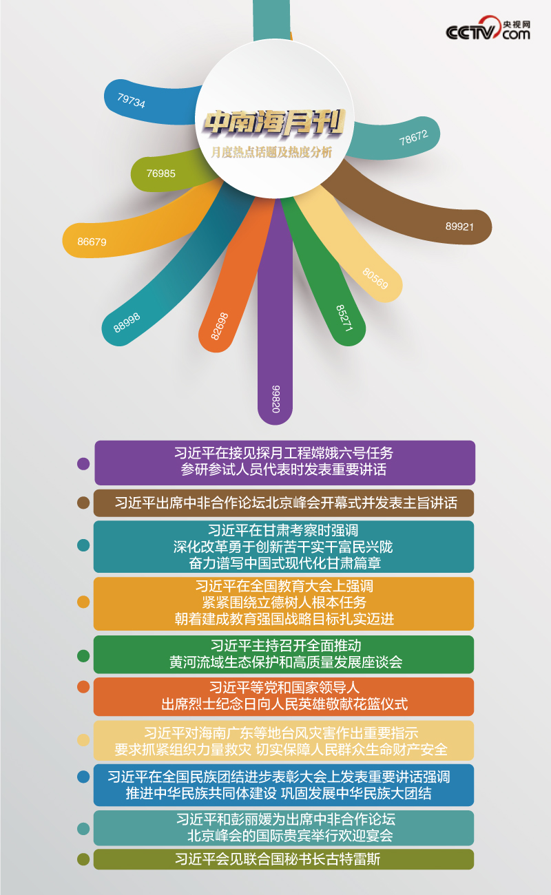 9月,中非深化團(tuán)結(jié)合作、攜手推進(jìn)現(xiàn)代化“雙向奔赴”,標(biāo)注下共筑人類命運(yùn)共同體的“全球南方時(shí)刻”。在央視網(wǎng)“智聞”系統(tǒng)提取分析的9月全網(wǎng)時(shí)政新聞熱點(diǎn)中,處處體現(xiàn)著匯聚夢(mèng)想、激蕩信心的生動(dòng)局面。