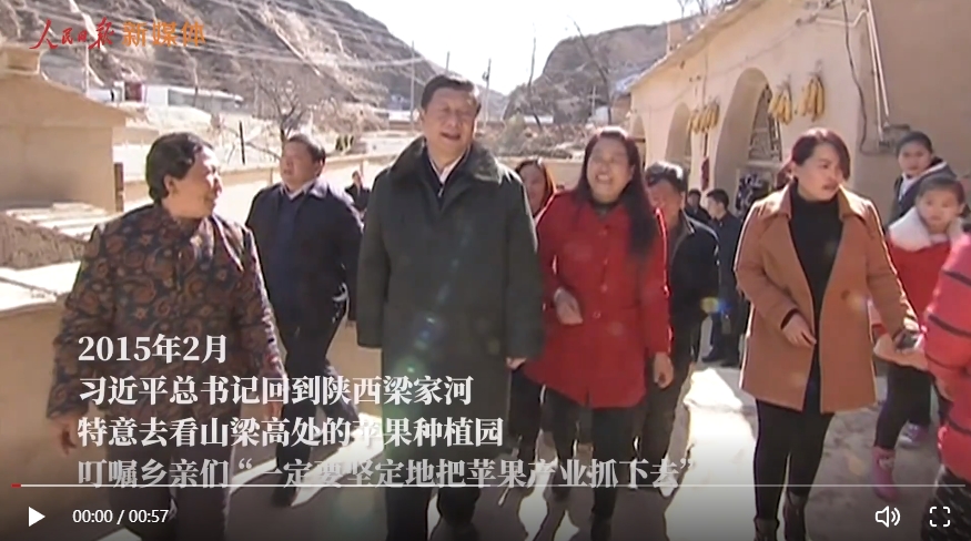 2015年2月,總書(shū)記回到陜西梁家河,特意去看山梁高處的蘋(píng)果種植園,叮囑鄉(xiāng)親們,“一定要堅(jiān)定地把蘋(píng)果產(chǎn)業(yè)抓下去?!贝藭r(shí),聲勢(shì)浩大的脫貧攻堅(jiān)正如火如荼。