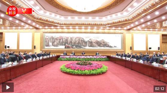 10月11日上午,國家主席習近平在北京人民大會堂集體會見出席中國國際友好大會暨中國人民對外友好協會成立70周年紀念活動的外方嘉賓。