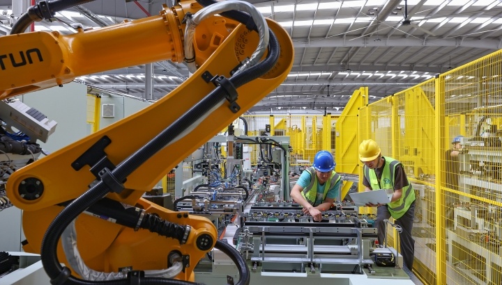 江蘇昆山,智能生產線上人機協(xié)同作業(yè)