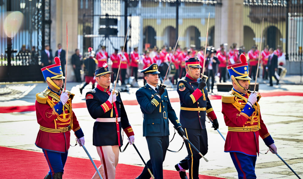 當(dāng)?shù)貢r間11月14日下午,國家主席習(xí)近平同秘魯總統(tǒng)博魯阿爾特舉行會談。在秘魯禮賓馬隊(duì)護(hù)衛(wèi)下,習(xí)近平乘車抵達(dá)總統(tǒng)府,受到博魯阿爾特總統(tǒng)熱情迎接。博魯阿爾特在總統(tǒng)府前廣場為習(xí)近平舉行隆重盛大歡迎儀式。