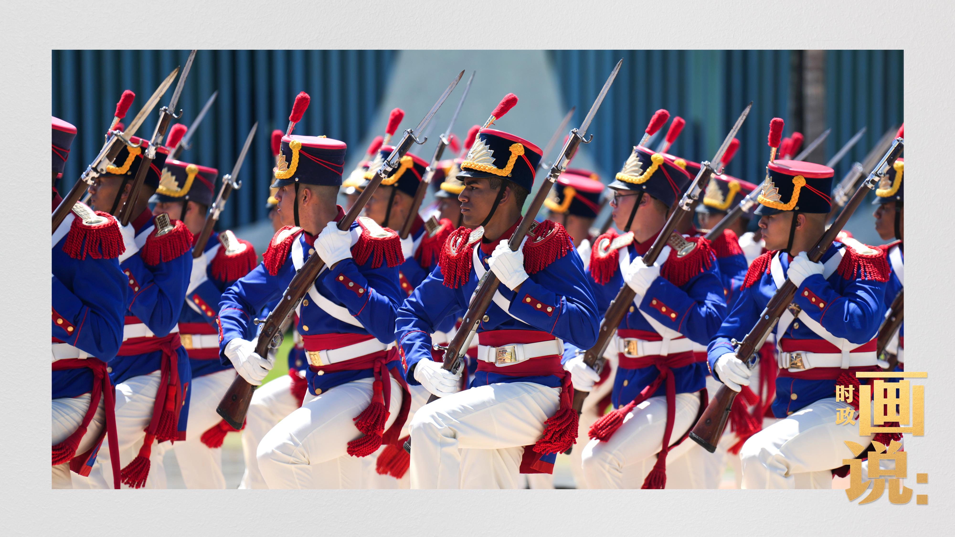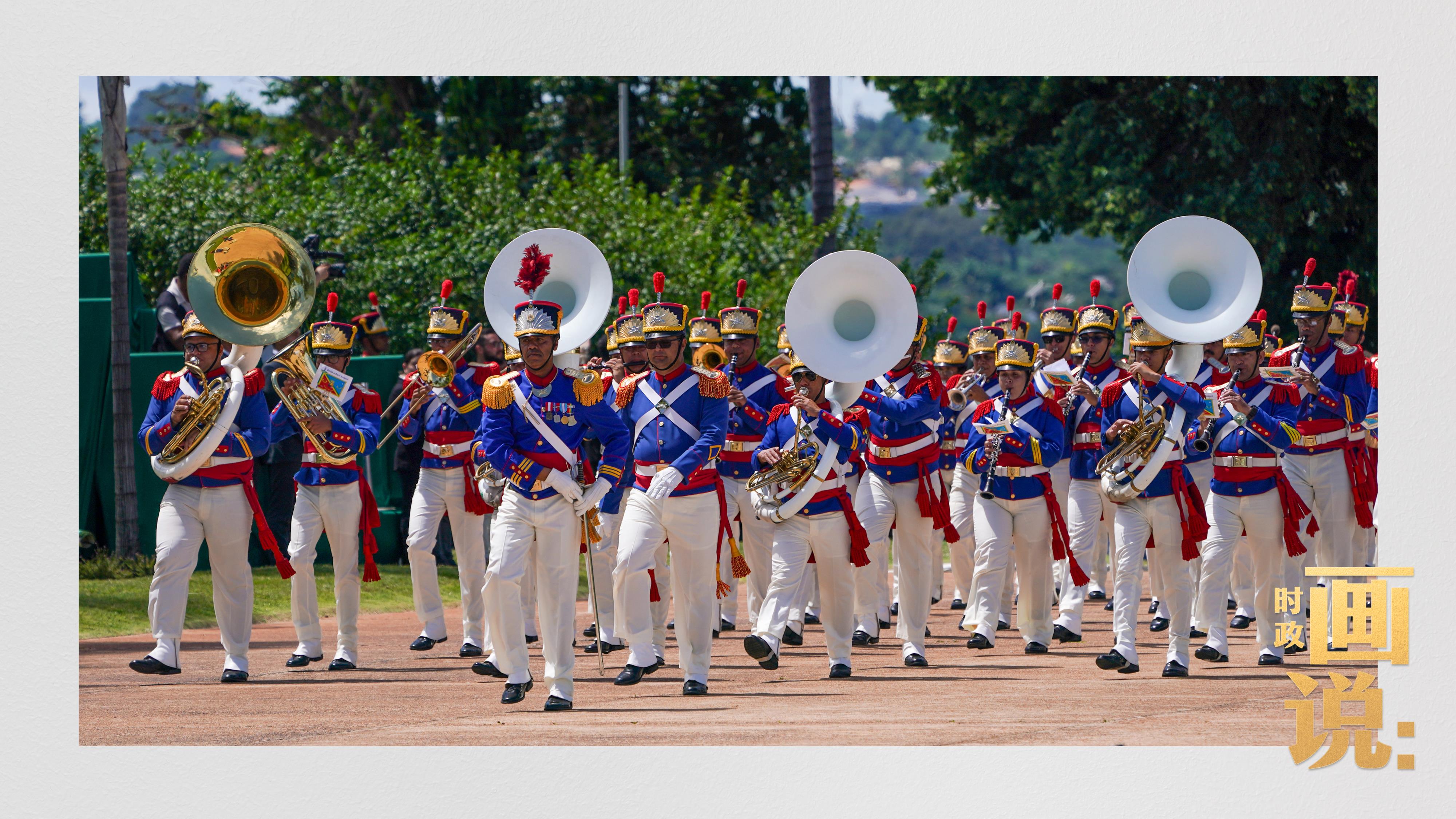 騎兵護衛(wèi)習(xí)近平主席專車抵達儀式現(xiàn)場,巴西藝術(shù)家用中文深情唱響中國經(jīng)典民歌《我的祖國》,現(xiàn)場氣氛隆重?zé)崃摇?/p>