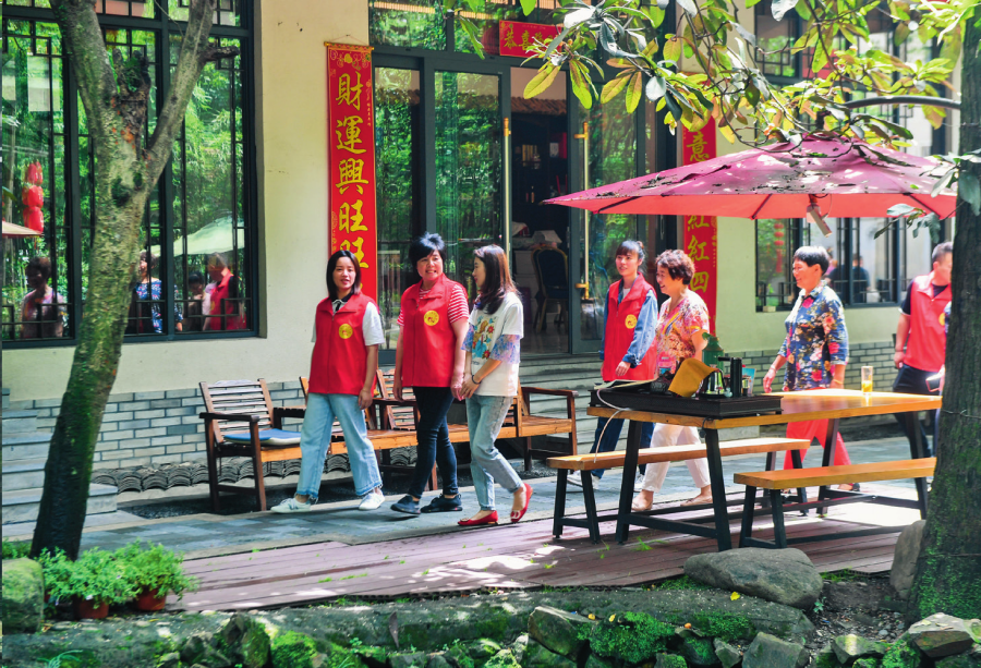 走進(jìn)白沙村,只見柏油馬路邊是排列齊整的黃色小洋樓,家家戶戶門口都有綠植點綴,村里建起健身廣場、籃球場、游泳池、羽毛球場等大型運動場所。2024年春節(jié),村里組織第三次拍攝全村福,上千村民齊聚在一起,用鏡頭定格幸福笑容。